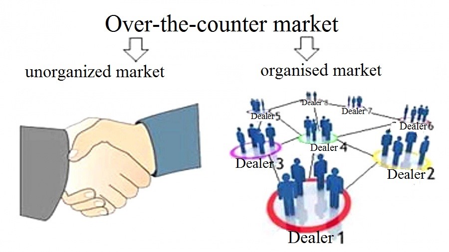 Transaksi ini sering dilakukan dengan bantuan perantara sebagai individu yang menjadi penganjur proses penawaran. Tetapi jika di bursa rasmi, pihak-pihak dilindungi oleh undang-undang dan seorang perantara bertanggungjawab untuk urus niaga, di pasar yang terlalu padat, dia tidak bertanggungjawab. Peserta dalam urus niaga menyelesaikan akaun secara langsung, jadi dana tidak dikhaskan terlebih dahulu.