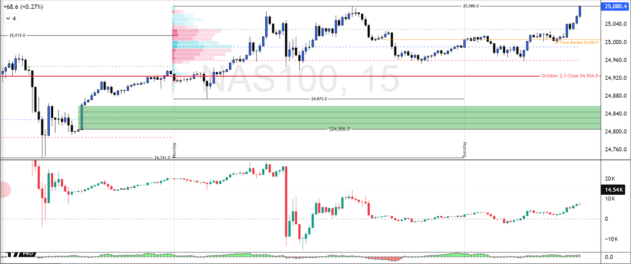FenzoFx—Nasdaq is up by 0.20% today. The majority of the gains were in the London session. As we approach the NY session, the price is getting closer to the $25,080.0 all-time high.