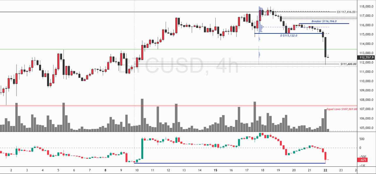 Immediate support is at $110,370. Technically, BTC/USD could target the mean threshold of the bearish FVG near $114,000.0, offering a premium entry for short positions aiming below $107,268.