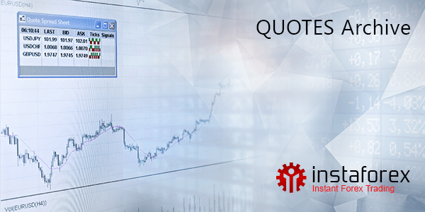 Sejarah sebut harga adalah asas analisis teknikal yang berkualiti. Arkib sebut harga dari InstaForex memberikan anda maklumat arkib pada salah satu daripada 72 instrumen perdagangan paling popular, iaitu: 21 pasangan mata wang, Emas dan Perak, dan CFD pada 49 saham.